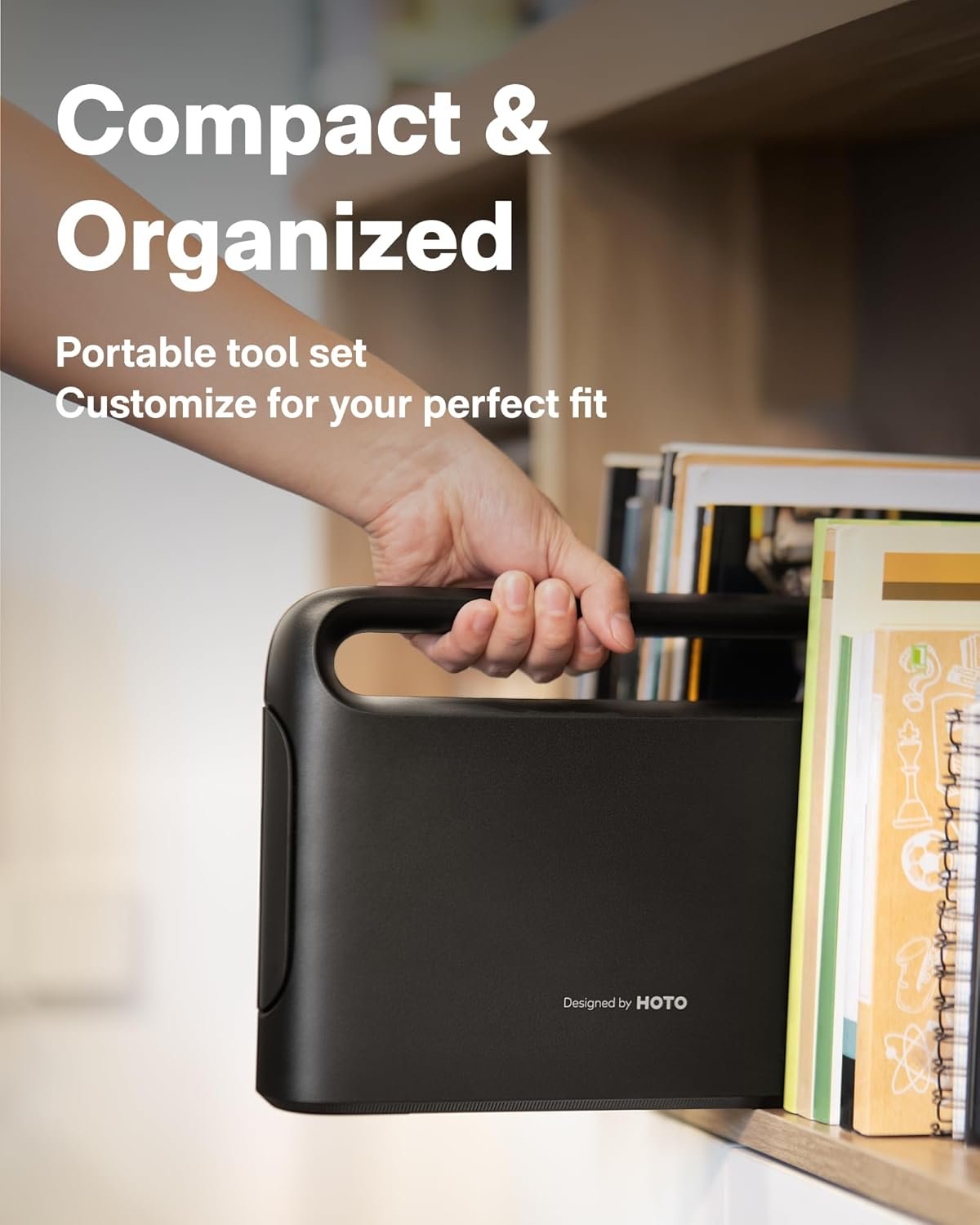 The HOTO 40-Piece Tool Kit is a comprehensive solution for home repairs and DIY projects. It includes a smart electric screwdriver with three torque modes and an LED ring light, along with 14 essential tools and 26 accessories. All components are neatly organized in a compact, durable case for easy storage and portability. Ideal for homeowners, students, and DIY enthusiasts seeking a reliable and stylish toolkit.